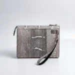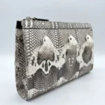 This cobra skin clutch is a remarkable accessory that combines luxury with practical design, making it an eye-catching addition to any ensemble.