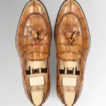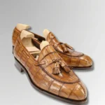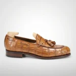 Elevate your footwear collection with our Crocodile Belly Skin Tassel Loafers, designed for men who appreciate true luxury and expert craftsmanship. These loafers are handcrafted from genuine crocodile belly skin, offering a distinct pattern and exceptional softness. The natural texture of crocodile belly leather makes each pair of Crocodile Belly Skin Tassel Loafers unique.