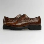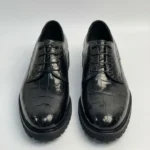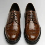 The Crocodile Lug Derby is available in black and brown, offering versatility for both business and casual settings.