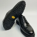 Inside, the shoes feature a soft leather lining and a full-grain leather insole, ensuring breathability and all-day comfort. The robust Vibram rubber outsole provides superior traction, shock absorption, and long-lasting wear, ideal for both formal and urban environments.