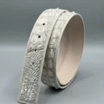Elevate your accessory game with this exquisite crocodile skin belt without buckle, crafted from 100% genuine crocodile leather for unmatched durability and luxury. The solid pattern and Himalayan white color add a touch of sophistication, making it a versatile piece that complements any wardrobe. Whether you’re dressing up for a formal event or adding a refined touch to casual wear, this belt effortlessly enhances your style.