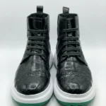These Crocodile Skin High-top Board Sneakers are expertly crafted from genuine crocodile belly leather, offering a distinctive, luxurious texture with an elegant appeal. Additionally, the sneakers feature a sleek, high-quality finish, making them perfect for those who appreciate premium footwear. Furthermore, the soft cow leather lining provides a breathable and comfortable fit, ensuring all-day ease. In addition, a durable rubber outsole enhances traction and flexibility, making them suitable for various surfaces. Moreover, the lace-up closure allows for a secure and adjustable fit, adding to their practicality. Designed for both style and performance, these sneakers seamlessly blend sophistication with everyday functionality. Ultimately, they are ideal for casual outings or upscale events, making a bold fashion statement wherever you go.