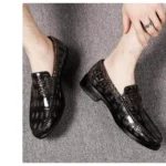 Inside, the lining is made from premium cow leather, providing breathability and a soft, luxurious feel. The full-grain leather insole offers cushioning and support, ensuring comfort throughout the day. The outsole, crafted from genuine leather, delivers long-lasting durability and a polished finish, perfectly balancing practicality and sophistication. Whether you’re attending a business meeting or enjoying a casual outing, these hand-painted crocodile loafers are the ultimate choice for elegant footwear.