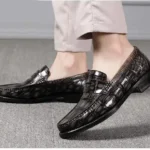 Crocodile leather is synonymous with luxury and exclusivity, making it the perfect choice for those who appreciate fine craftsmanship. Its distinct, natural patterns and glossy finish ensure that every pair of crocodile tassel loafers is unique, showcasing unparalleled artistry. In addition to their striking appearance, these loafers are known for their durability, maintaining a pristine look even with regular wear. Offering a perfect balance of elegance and resilience, crocodile leather loafers elevate any wardrobe with both style and lasting quality.