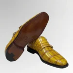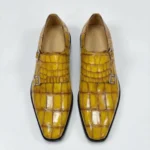 Elevate your wardrobe with our Crocodile Skin Shoes With Double Buckle Strap, crafted for the modern gentleman who appreciates luxury and style. Made from genuine crocodile leather, these shoes offer unmatched durability and sophistication. The bold yellow hue adds a unique touch, perfect for office or formal occasions. Designed for both comfort and elegance, they make a lasting impression while maintaining professionalism. Invest in these timeless shoes and elevate your wardrobe to new heights.