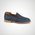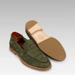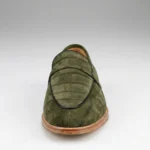 Choose from a range of elegant colors, including camel, green, blue, and classic black. Each color option reflects meticulous craftsmanship and attention to detail. These crocodile skin suede loafers are perfect for both casual and dressy occasions. They pair well with tailored trousers, chinos, or even premium denim.