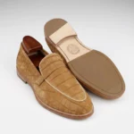 Step into refined elegance with our handcrafted crocodile skin suede loafers for men. These loafers are the ultimate blend of luxury and everyday sophistication. Each pair is made from 100% genuine crocodile skin with a soft suede finish. This unique material offers a rich texture and natural character that stands out.