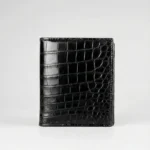 Its rich black finish showcases the unique pattern and depth of genuine crocodile leather, ensuring that no two wallets are exactly the same. The natural scales are polished to highlight the leather’s unique grain and texture, adding a discreet yet bold touch to your everyday carry.