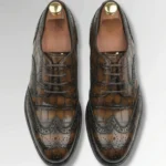 Designed for gentlemen who value both style and substance, these Handpainted Crocodile Brogue Shoes feature traditional brogue perforations that highlight their artisanal character. Every detail — from the rich patina finish to the subtle stitching — reflects exceptional craftsmanship.