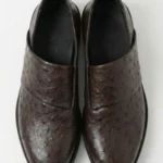 These slip-ons come in black and brown. Both colors highlight the natural grain of the ostrich leather. The leather lining adds comfort. The full-grain leather insole improves breathability. The leather outsole includes a protective rubber layer. Because of this, the shoes stay durable on different surfaces.