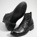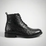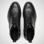 Designed for men who appreciate luxury without compromise, these boots feature a lace-up design with a discreet side zipper, offering both style and practicality. The sleek silhouette and subtle sheen of the ostrich leather make them suitable for formal occasions or elevated casual wear.