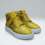 The yellow python leather looks amazing, but the high-top feels a bit stiff around the ankles. They’re unique and stylish.