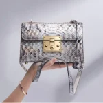 Measuring 24 x 9.5 x 16 cm, this exquisite python skin lock flap bag strikes the perfect balance between practicality and style. Its compact size allows for easy carrying while offering ample storage space for your essentials. The interior includes a spacious compartment, a zipper pocket, a slot pocket, and a dedicated phone pocket for organization. Whether you’re heading to a meeting or an evening out, this bag ensures security while keeping your style effortlessly chic.
