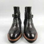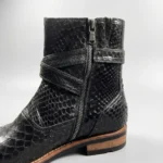 Elevate your style with the Snake Leather Strap Boots, crafted from authentic python snake leather for a bold and distinctive look. These boots feature a unique strap design with a polished buckle, adding a touch of refinement to their retro-inspired silhouette. The natural scales of genuine snake leather create a striking texture, ensuring that each pair is truly one of a kind.