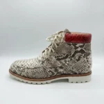 Step up your footwear game with these luxurious men’s snake skin boots, crafted to deliver both style and comfort. Made from genuine python snake leather, the upper showcases a naturally striking texture that instantly elevates any look. The refined pattern highlights the exclusivity of each pair, making these boots a true statement piece. Inside, the cow leather lining ensures breathability and softness, while the full-grain leather insole provides cushioned support that adapts to your feet for unmatched comfort. Durable, elegant, and designed for everyday wear, these boots are an essential choice for modern gentlemen who appreciate fine craftsmanship.