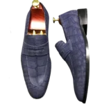 Enhance your wardrobe with these exquisite suede crocodile skin loafers, a perfect balance of luxury and versatility. Designed for both professional and leisure settings, they embody understated sophistication. The natural suede crocodile finish offers a distinctive texture, combining timeless elegance with modern refinement. Available in two classic shades: deep brown and rich blue, these loafers seamlessly pair with both business and casual attire. True to size and designed for all-day wear, they are the ideal choice for those who appreciate premium craftsmanship and comfort.